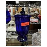 LARGE COBALT GLASS LIDDED JAR / VASE PIER 1 |