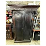 ANTIQUE ARMOIRE CABINET W PULL OUT DRAWERS NOTE |