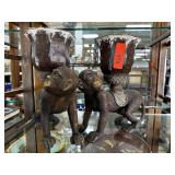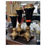 3 PC LARGE BLACK AND GOLD CANDLE HOLDERS |