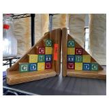 LARGE WOOD DESK W SIDE SHELVES |