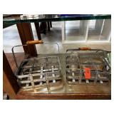 PAIR OF VINTAGE MILK BOTTLE CADDIES & SM BOTTLES |