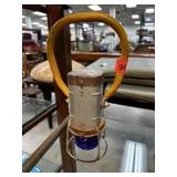 VINTAGE HAND LANTERN W BLUE GLASS BULB COVER |