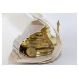 CATALOG TEXT BELOW: 1 - Antique Aladdin Oil Lamp Extra bottle of oil included. 2 - Glass Table Lamp 3 - Lead Cut Glass Crystal Vase 4 - Lot of Baskets 5 - Antique Oil Lamp with Bottle of Oil 6 - Wooden Baby Doll Craddle 7 - Bavarian 18 Karat Gold Coffe & Tea Pots 8 - Corning Ware Blue Cornflower Broil Bake Tray 9 - Waste Basket, Candle and More 10 - Fancy Pumpkins 11 - Clock Made from Tree 12 - 2 Cut Glass Serving Bowls 13 - Ribbed Ball Pitcher 14 - 2 Glass Serving Dishes 15 - Gorgeous Sterling Silver Hand Vanity Mirror 16 - Aladdin's Magic Lamp Bugmaster with Box 17 - Vintage Pair of Candle Holder Decorations 18 - Finish Bianco Blu Glass Bird BEAUTIFUL 19 - 19th Century French Brass Carriage Clock 20 - Willow Tree "Loving My Mother" 21 - 3 Concrete Bunny Rabbits 22 - Mustard Tea Pot and Pumpkin 23 - Hanimex 800 Slide Projector 24 - Vintage Sewing Basket with Contents 25 - Kitchen Necessities 26 - Cookie Jar and Platter 27 - Antique Old Spice Shulton Box 28 - Dugan Glass Vibrant Blue Opalescent 29 - Antique Satsuma Biscuit Jar Gold Gilt Geisha Des 30 - Glass Elephant BEAUTIFUL 31 - Lot of Assorted Bells 32 - Two Condiment Jars 33 - Lot of Precious Moments Figurines 34 - 2 Beautiful Bird Figurines-Carved Carol Stone 35 - Lot of Kitchen Utensils, Knives, Etc 36 - Hippocrates Plaque and Mug-Father of Medicine 37 - Set of Drinking Glasses 38 - Vintage Brockway Two Tier Tidbit Server 39 - 1940's Fenton Blue "Paisley Swirl" Covered Candy 40 - "Gloria" by W. Neudorff-Columbian Training Ship Gloria by W. Neudorff 41 - Painting-+-The Copper Teapot by L. Kahrs The Copper Teapot by L. Kahrs 42 - Hawaiian Monkey Pod Wood Salad Bowl Set 43 - Turkey Platter 44 - Floral Arrangement in Basket 45 - Lot of Assorted Bags and Purses 46 - Charles Summey Print of Church 47 - Basket with greenery 48 - Portable Sewing Table 49 - Wood Chest with Lid and Wheels 50 - Brass Table Lamp 51 - Glass Table LAMP 52 - Decorative Pumpkin and Watering Can 53 - Purple Vase with Flower Arrangement 54 - Signed Ceramic Vase 55 - Floral Spray 56 - Afghan 57 - Oscillating Fan 58 - Folding Luggage Cart 59 - Royal Norfolk Lemon Dishes 60 - Ladies Formal Gloves 61 - Fall Floral Artangement and More 62 - Fancy Trivets for your table 63 - Screwpull Wine Bottle Opener 64 - Chinese Carved Soapstone Bookends WOW 65 - Box of New Hangers 66 - Two Liz Claiborne Purses 67 - Cuisinart Classic Frozen Yogurt Ice Cream Maker 68 - Lot of Assorted Baskets 69 - Lot of Periodicals-Royalty, Kennedy, Reagan & 70 - Lot of Assorted Vases 71 - Lot of Ladies Hats and Visors 72 - Projector Clock, Timer and Luggage Locks 73 - Glass Wizard As Seen on TV 74 - Lot of Assorted Baskets 75 - Large Lot of Office Supplies 76 - Lot of White Washed Baskets 77 - Pair of Ladies Cloud Boots 78 - Lot of Baskets 79 - Lot of Leather Bound Books 80 - Beautiful Mirrored Dresser Tray 81 - Equity Clock 82 - Lovely Cup with Lid 83 - Lot of Pads 84 - Flushable Wipes 85 - Portable Cooler Bag 86 - Lot of Assorted Baskets 87 - Mid Century Art Fishing Boats 88 - Vintage Shafford Fine Porcelain Floral Teapot 89 - Assorted Purses and Bags 90 - Snauzer Dog Statue 91 - 2 Concrete Bunny Rabbits 92 - Wood Magazine Rack 93 - Yellow Roses 94 - Desk Lamp 95 - Basket 96 - Pair of Brass Table Lamps 97 - Lidded Basket 98 - Ladies Purse 99 - Planter 100 - Power Strips 101 - Iron, Silver polishing plates, Phone Ringers 102 - Musitread Model MT 408AM-SP Stereo Record Player Musitread Model MT 408AM-SP 103 - Lot of Leather Bound Books 104 - Pair of Bookends 105 - Small Vacuum--Dust Buster 106 - Heating Pad and Rose Globe 107 - 2 NEW Pearl HDMI Cables 108 - Artisans Angel=Copper, Metal and Stone 109 - Seth Thomas Mother of Pearl Alarm Clock 110 - Bushnell Binoculars 10 x 50 WA 111 - Greenery Arrangement 112 - Toaster and Coffee Maker 113 - Lot of Kitchen Goodies 114 - V Tech Telephone System 115 - Lot of Tools and More 116 - Lot of Lightbulbs 117 - Pair of Brass Bookends 118 - Wall Plaques 119 - Ladies Hosiery 120 - Lot of LInens 121 - GORGEOUS Sullivans Polish Crystal Cut Crystal Egg Sullivans Polish Crystal 122 - Vtg Porcelain Tape Dispenser w/ Stamp Bowl 123 - Wood Carved Bell 124 - Kitchen Necessities 125 - Lot of Decor, Angle, Cross and More 126 - Command products Lot 127 - Praying Hands Bookends q 128 - Snow Globe 129 - Crystal Connemara Celtic Mandolin Sculpture 130 - Baskets 131 - Lenox China Holiday Platter 132 - Lot of MIsc 133 - Ladies Leather Gloves & Umbrella 134 - 2 Timex Alarm Clocks 135 - Vtg Imperial Glass Candy Dish 136 - Lot of Assorted Leather Bound Books 137 - Vase with Flower Arrangement 138 - Beautiful Garden Print 139 - Assorted Purses and Bags 140 - Lot of Ladies Scarves Scarfs and More 141 - Wood Jewelry Box & Contents 142 - Sterling Silver Bon Bon or Nut Spoon 143 - Shipping Labels and Picture Frames 144 - Vintage Medicine Bottles 145 - Plastic Server 146 - Assorted Serving Pieces and More 147 - Set of First Encyclopedias 148 - Assorted Oriental Calendars 149 - Decorative Candle Holders 150 - Ceramic Sugar Bowl 151 - Hand Blown Glass Violin 152 - Medical Trivia, The Founders and Playing Cards 153 - Silver Dollar 154 - Carved Owl Sculpture 155 - Wooden Box 156 - Boy and Girl Figurine 157 - Flur-De-Lis Bookends 158 - Lot of Pretty Candles 159 - Charham 100 Percent Wool Winter Blanket 160 - Doctors Norman Rockwell 161 - Vtg Bohemian Czech Glass Decanter & Cup 162 - Longaberger Pottery Tea Pot and Decor 163 - Lot of Leather Bound Books 164 - Longaberger Magazine Basket 165 - Step Stool 166 - Matching Flowers 167 - Carved Soap Stone Vase WOW 168 - Lot of Greenery 169 - Pink Depression Glass Bisquet Jar 170 - Fenton 2003 Mulberry Basket 3245 M5 Signed 171 - Fenton Amethyst Carnival Glass Vase 172 - Vintage Don Fenton Signed Blue Opalescent Melon Be SIgned Don Fenton 173 - Scott Fenton Signed Flute & Dot Purple Violet Sati 174 - Wet/Dry Shop Vacuum Vac 175 - Art Glass Vase 176 - George Fenton Signed Vase 177 - Aztec Serving Platter 178 - Lynn Fenton Signed Cranberry Glass Vase 17
