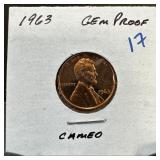 1963 GEM PROOF CAMEO MEMORIAL CENT |