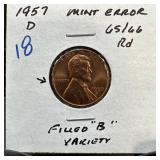 1957-D WHEAT PENNY CENT FILLED B VARIETY |