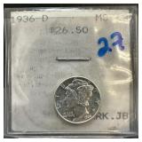 1936-D MERCURY SILVER DIME HIGH GRADE |