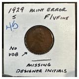 1929-S WHEAT PENNY CENT MISSING VDB |