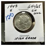 1943-D MERCURY SILVER DIME HIGH GRADE |
