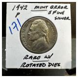 1943-S STEEL WHEAT PENNY CENT CLASHED DIES |