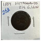 1884 NETHERLANDS 2 1/2 GULDEN |