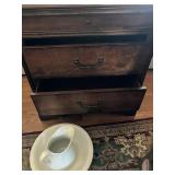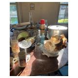 Costume jewelry, vintage bags, Worlds Fair spoon collection, retro kitware, glassware & collectibles, dolls & doll furniture, toys, vintage wicker baby scale, stoneware jugs, china, shaving stand, artwork, microwave, fixtures, shades, mahogany double pedestal dining room table & chairs, wood 8 drawer filing cabinet, oak sideboard, curved glass curio, rolltop desk, secretary, assorted dressers, tables, lamps, Hoosier, console radio, TV armoire & more! |