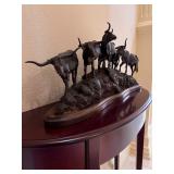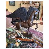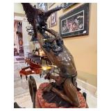 Bob Robertson ‘Impossible Dream- Ecunpicasni Owanyanke’ (Sacred Act) Bronze Statue with Black and Brown Patina of a Native American Indian with Eagle; ‘Hooves and Horns’ by Western Artist-Cynthia Rigden and Bronze Pegasus by Wildwood Accents..