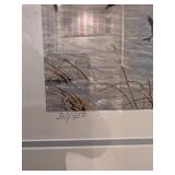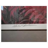 Robert Bateman - “Split Rails – Snow Buntings”, “White Geese in Flight” Circa 1981, “Cardinal and Sumac” and Framed Poster of National Museum of Natural History, Smithsonian Institution: “Portraits of Nature”..