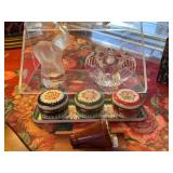 All the pretty things are with Carol and Stacy this weekend in the Jewelry Area.. an assortment of Costume Jewelry to some Sterling and other Precious Metals, great names like Doug Paulus, Kenneth J Lane, Milor, Michaela Frey, Jg, Labella, Richeliu to Monet.. a Carved Abalone Shell Ring to Jane Popovich Coral Concha Bracelet. A Cristal Saint Louis Ivoire Balmain Perfume Decanter, Chanel Perfume Bottles, Elizabeth Taylor White Diamonds Rollerball to Crystal Figurines from Baccarat, Swarovski, Steuben, Waterford and Tiffany & Co., Art Glass from Murano, M. Hoglund and Caithness Goldrush to a Harrods Pill Box. A Mens Dior Scarf to George Bush Presidential Library Ornament, George Bush Lapel Pins to Overocean Filigree West Germany Mechanical Table Clock, Generation 2 Kindle to Heavy Duty Duck Calls, a Kolophonium Miniature Violin, Mont Blanc Mini Pen, a Retro 1951 Fountain Pen with Holder, a Rebecca Moss Pen and others from Waterman and Diplomat to mention a few things!