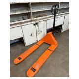Lot #18 - Used Industrial Orange Pallet Jack - Manual Warehouse Equipment