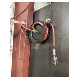 Lot #26 - Heavy-Duty Wall-Mounted Air Hose Reel with Hose and Lubricator - Perfect for Workshop Use