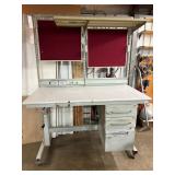 Lot #58 - Industrial Workstation Desk with Drawers and Overhead Lighting Board