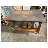 Lot #204 - Large Hand Fabricated HEAVY Metal Working Table w/ 1" Thick Steel Top