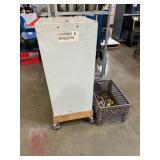 Lot #176 - Rolling Metal Cabinet & Crate Filled w/ Couplings, Chains, Binders & Clamps