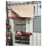 Lot #184 - Metal Storage Cabinet w/ Attached Organizers Filled w/ Copper Fittings & Other Misc. Items