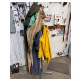 Lot #198 - Coat Rack Filled w/ Misc. Coveralls & Raincoats