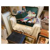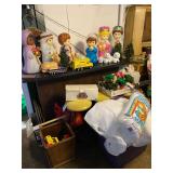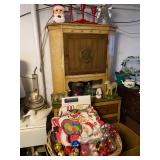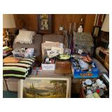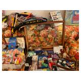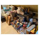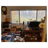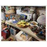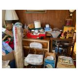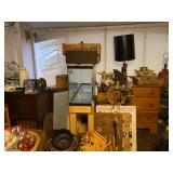 Antique Oak Round Dining Room Table w/Fancy Pedestal & Four Chairs, Gray Microfiber Sofa – Reclines At Each End, Antique Primitive Tall Blanket Chest, (3) Mid Century Bar Stools, Oak Corner Cupboard, Vintage Flame Mahogany Full Bed, Cedar Chest, Dresser w/Mirror, Armoire, Chest & (2) Nightstands, Console Table w/Tall Attached Mirror, Wood Dinette Set w/Drop Ends & (2) Chairs, Unusual Pyramid Style Curio, Slant Front Desk, Jewelry Armoire, Vintage Knee Hole Desk, Art Deco Dining Room Table, Buffet & China Closet, Baker’s Racks, Vintage Wood Bookshelves, Wood Slipper Chair, End Tables, Vintage Banjo Clock, Metal Two Tier Cart, Table & Floor Lamps Including Pair Chalkware Genie’s, Retro Tension Spring Pole, Tiffany Style Floor & Table, etc., Wall Mounted Curios, Men’s Valet, Mahogany Chair w/Needlepoint Seat & Lyre Back, Framed Art Work, Wall Mirrors, Vintage Console Stereo, Flat Screen TV, VHS/DVD Player, TV w/VHS Player, Pair Retro Panasonic Round Shelf Speakers, Large Honey Amber Consolidated Glass Catalonian Vase, Lenox Flower Figurines, Lot Of Murano Glass Fruit Candy, 100’s Of Knick Knacks & Figurines, Souvenir Spoons On Wall Mounted Racks, Booth’s Dinnerware w/Cream Soup Bowls, Beautiful Set Of Fancy Limoges Dinner Plates, Multi Sets Of Stemware, Tons Of Cookware Including 1801 Signature Series Blue Revere Ware & Other Unused Vintage Pieces, Corning, Fire King, Barware, Decanters, New Campbells Advertising Insulated Mugs, Corelle “Spring Blossom Green” Dinnerware, Wagner Cast Iron Stew Pot – NIB, Small Appliances Including KitchenAid Mixer, George Foreman – NIB & Other Small Appliances In Original Boxes, Bakeware, Stainless Flatware, Silver Plate, (5) Individual Gallon Bags Of Costume Jewelry, Sterling Jewelry, Chunky Gem Stone Stretch Bracelets, Many Watches Including The Simpsons, Trinket Box Collection, Spritzes, Sprays & Perfume Miniatures – Some NIB, Men’s & Ladies Clothing Including 1940’s Through 1990’s Including Dresses, Sweaters, Sweatshirts, Novelty T-Shirts, Lingerie, Hawaiian, Velvet Coats, etc., Ladies Accessories Including Purses, Scarves, Handkerchiefs, Shoes & Gloves – Some Vintage, Fur Stole & Coats, Large Amount Of Linens – New & Old Including Handmade Quilts, Afghans, Chenille Bedspreads, Throws, Rag Rugs, Retro Sheet Sets – NIP, etc., (2) Sewing Machines Including Portable & White In Cabinet, Unbelievable Amount Sewing & Craft Items Including Vintage Fabric, Large Bin Of Disney Stuffed Animals, Dolls Including Crissy Baby, Madame Alexander Scarlett, Cabbage Patch, Snoring Ernie, etc., Toys & Board Games Including Barbie, Casper, Miss America, Melvin The Moon Man, Dr. Kildaire, Family Affair, (2) Pink Battery Operated Princess Phones, Tin Target Game, Large As Is German Bisque Head Doll, Green Wicker Doll Buggy, Religious Items, Books, CD’s, DVD’s & VHS – Many Sealed, Paper Ephemera Including (2) Suitcases Of Travel Brochures, Disneyland, Universal Studios, Decals & Bumper Stickers, etc., Many Old Framed & Unframed Photos, Boy Scout Memorabilia, Binoculars, Vintage Luggage, Vintage Ford Free Standing Glass Gumball Machine w/Marquis, Advertising Tins, Wooden Nickels, Halloween Including Vintage Masks, Complete Visible Man & Other Costumes, Blow Mold Jack O Lantern Pails, Fluorescent Pumpkin & Cat Blow Mold, Wood Ironing Board, Occupied Japan Figurines, (2) Vintage 48 Star Flag Handkerchiefs, TWA Souvenir Mini Mug, Glass Milk Bottles, (2) Sets Mid Century Pilsner Glasses, Vintage Character & Collector Glasses Including Twelve Days Of Christmas, Love Is By Kim, Muppets & Seven Wonders Of The World, Set Of (12) Blefeld Zodiac Tumblers w/Original Tags, Doll House Furniture, Bunch Lucite Grapes & Flower Clusters, Matchbook Collection, Vintage Stoneware Crocks & Jugs – (2) w/Lids, Christmas Including Ornaments, Figurines, Nativity Blow Mold Set, Stockings, Gift Box Sets, Wrapping Paper, etc., Girl’s Mountain Bike, (4) Clothes Drying Racks, Power & Hand Tools, Hardware, Craftsman Air Compressor, Tool Boxes |