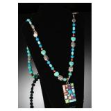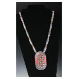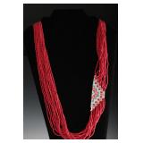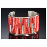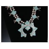 Native American & Estate Jewelry Explore an exquisite collection of jewelry that beautifully blends traditional gold pieces with a remarkable selection of **Native American jewelry**. This collection features stunning silver and coral cuff bracelets crafted by skilled Zuni and Navajo artisans, alongside necklaces made from turquoise, coral, gaspeite, and heishi beads. You'll find a diverse array of **earrings** showcasing turquoise, coral, and silver, featuring both vintage and contemporary designs. Additionally, our assortment includes rings adorned with intricate inlay work. Highlighted pieces within this collection include rare antique Zuni squash blossom necklaces by renowned artist Frank Dishta, as well as contemporary Navajo gold jewelry that exemplifies modern craftsmanship.