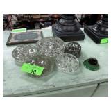 LOT OF VINTAGE GLASS & METAL FLOWER FROGS |