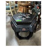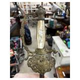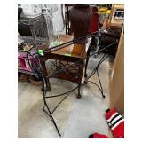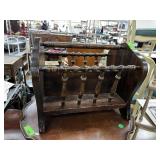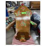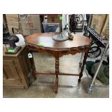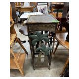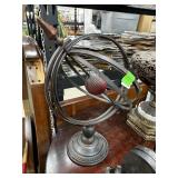 VINTAGE WOOD OIL LAMP STAND W STRAWBERRY MOTIF |