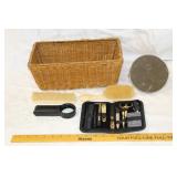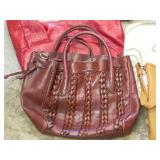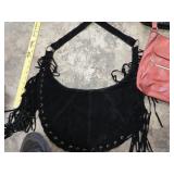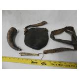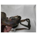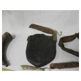 517 - Antique Gun Powder Leather Bag and Powder Horn