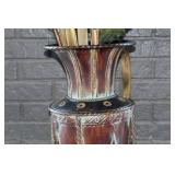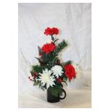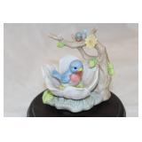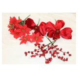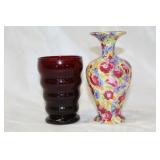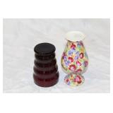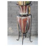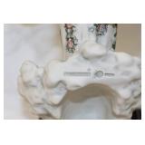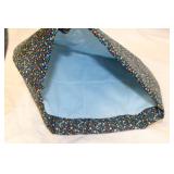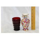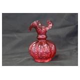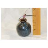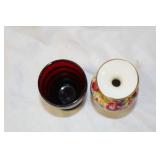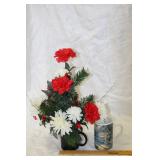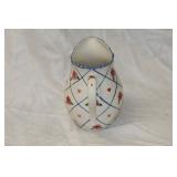 3 - Fenton Blue Satin Glass Vase w/ Poppie Flowers