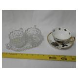 22 - Vintage Child's Green Akro Agate Cup & Saucer