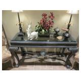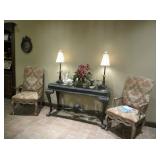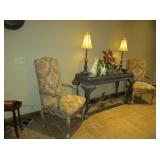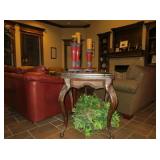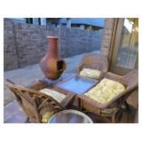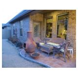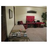 Large Items: Phillips flat panel T.V.; Lateral filing cabinet; desk; beautiful dining table with 6 chairs and 2 leafs; area rug; pair of matching, upholstered armchairs; stylized metal sofa table with thick glass top; leather sofa; Howard Miller love seat; convertible chess table; pair of matching club chairs; Vision Fitness recumbent bike; gum ball machine with vintage gum; counter-size, engraved wine bottle opener; 2 Mink Coats; twin-size hide-a-bed; steamer; nice armoire wicker patio settee; glass patio table and 4 chairs; huge Chiminea; male and female matching Schwinn bikes; 2 wine refrigerators.