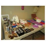 Collectibles: Grand Baroque Sterling Silver set with service for 12 and 16 serving pieces; Wedgwood 'Cavendish' there are a lot of pieces to this classic, elegant set; costume jewelry; Waterford; Dremel black and red shoe polisher; Coach purse; bernina serger; vintage collectibles; Frankhoma; silver-plate; Nieman Marcus home decor items.