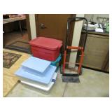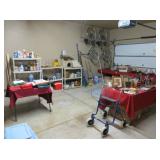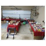 Misc.: Nice Christmas decor; books; CDs; nice, high-end kitchenwares; nice lady's clothing, shoes, belts; Brighton shoes, belts; cute garden pots, decor, and accessories; nice artificial trees; new light fixtures, chandeliers, and fans; plastic storage shelfs, tubs; walker; easel.