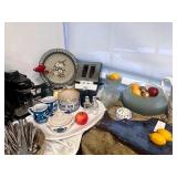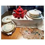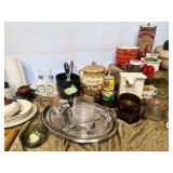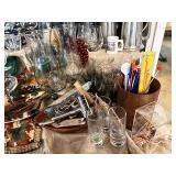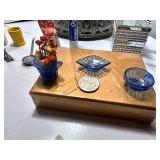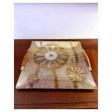- Mid-century retro marcel Duval glass serving dish, wood handles and daisy floral motif-stunning