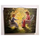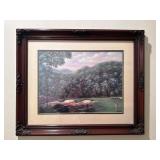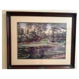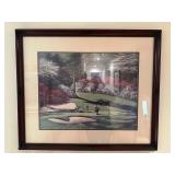 - Agusta National Golf Course - Two golfers by the waterfall by Sambataro framed matted print