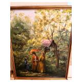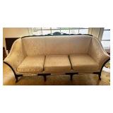 - Two French provincial cream color three seat, wood carved trim sofa family