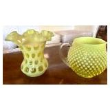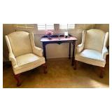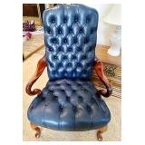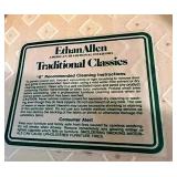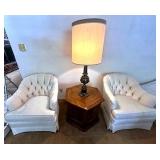 - Two Ethan Allen mid-century barrel tufted button armchairs