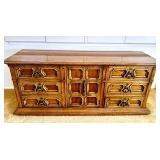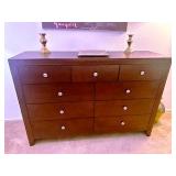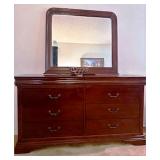 - Wood dresser with a mirror, six drawers and two hidden drawers