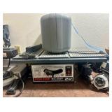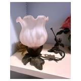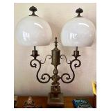 - Vintage torchiere brass enamel table lamp ram heads with milk glass and shade