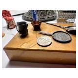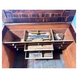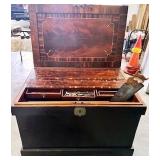 - Hand crafted wood chest with inlay wood, locked and keyed