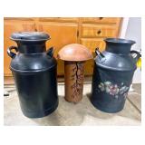 - Two twin brass headboards with three round ceramic balls white with flower design