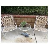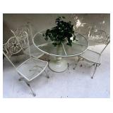 - Vintage Woodard Andalusian wrought iron dining/patio set round table glass top with four wrought iron match chairs