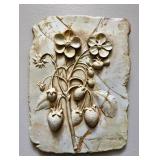 - Vintage Hen Feathers plaster ivory 3D botanical floral wall art strawberries