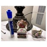 - Pair of vintage ceramic white table lamps 3D flower design with shade