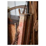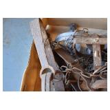 Collectibles: Vintage Bicycles, Coleman Stove, Vintage Scales, Winchester Roller Skates, Winchester Ice Skates, Butcher Knives, Ford Fan, Pottery Crocks and Jugs, Lanterns, Hoists, Canes, Hay Hooks, Snowshoes, Trampoline, Childs Runner Sleds, Wooden Bucket, Decoys, Sad Irons, Folding Rules, Folding Rules, Vintage License Plates, Dated Jars, Vintage Kitchen Utensils, Animal Figurines, Willow Farms Baby Face Bottle, Chicken Crates, Vintage Oilers, Farm Manuals, and Other