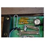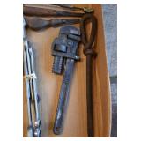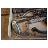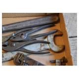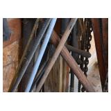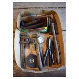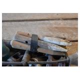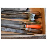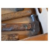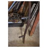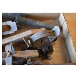 Tools and Other: Delta Table Saw, Duracraft Drill Press, Craftsman Sharpening Wheel, Toolboxes, Hardware, 1 and 2-Man Saws, Bench Top Vices, Screw Drivers, Hatchets, Adjustable and Other Wrenches, Hammer Heads, Files, Socket Sets, Clamps, Indexes, Pliers, Wood Planes, Chains, Drill Bits, Shop Lights, Lawn Roller, Lawn Magnet, (15) Full Round 8’ Treated Posts, Levels, and Other