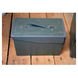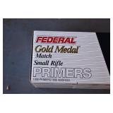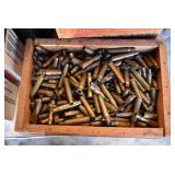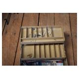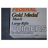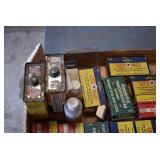 Hunting/Sporting Related: Large Amount of Animal Traps, Various Rifle, Shotgun, and Pistol Ammunition, Powder, Reloading Dies, Gun Cases, Reloading Manuals and Books, Caldwell Lead Sled, Metal Ammo Cans, Reloading Stand, Scopes, Gun Cleaning Items, Slings and Holsters, Vintage Primer Tins, Scope Rings, Brass, Antlers, Fishing Items, Game News, Bait Bucket, Tree Stands, Hunting Clothing, and Other