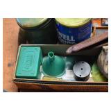 Advertising Items: Large Amount Wooden Gun Advertising Boxes, Large Amount of Advertising Tins, Dr. Salsbury’s Medicines and Biologics for Poultry and Farm Livestock Display, Browns Mule Tobacco Box, Vintage Gasboy Atlantic Gas Pump, Local Advertising Items, and Other